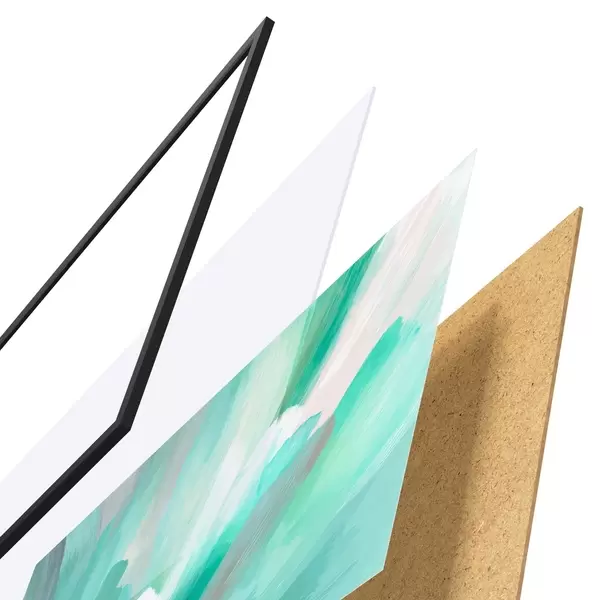 Le poster se compose d'un cadre, d'un plexiglas, d'une image imprimée et d'un support en aggloméré. Le poster peut être immédiatement accroché au mur grâce aux fixations au dos.