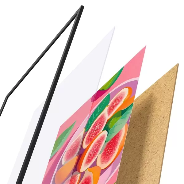 Le poster se compose d'un cadre, d'un plexiglas, d'une image imprimée et d'un support en aggloméré. Le poster peut être immédiatement accroché au mur grâce aux fixations au dos.