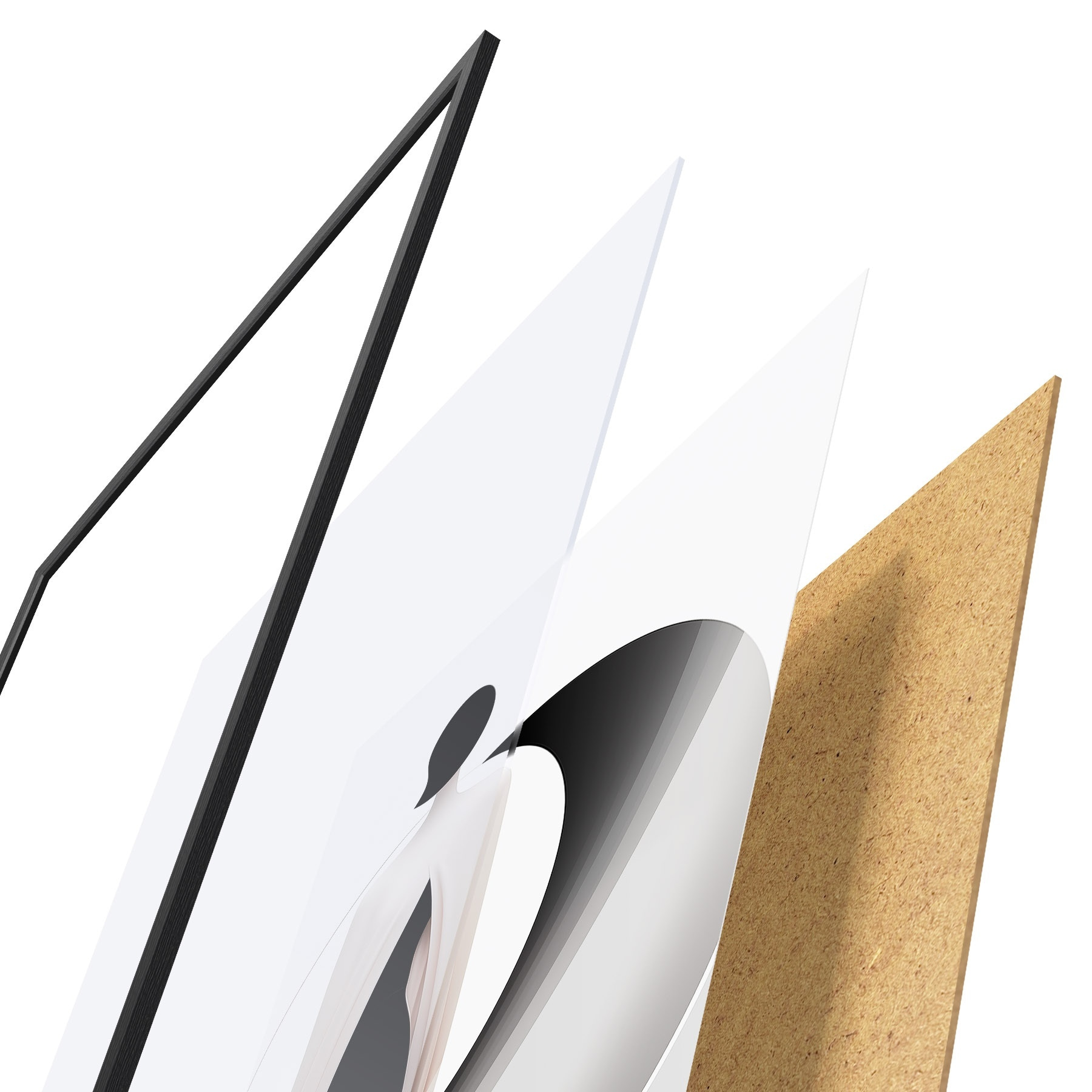 Le poster se compose d'un cadre, d'un plexiglas, d'une image imprimée et d'un support en aggloméré. Le poster peut être immédiatement accroché au mur grâce aux fixations au dos.