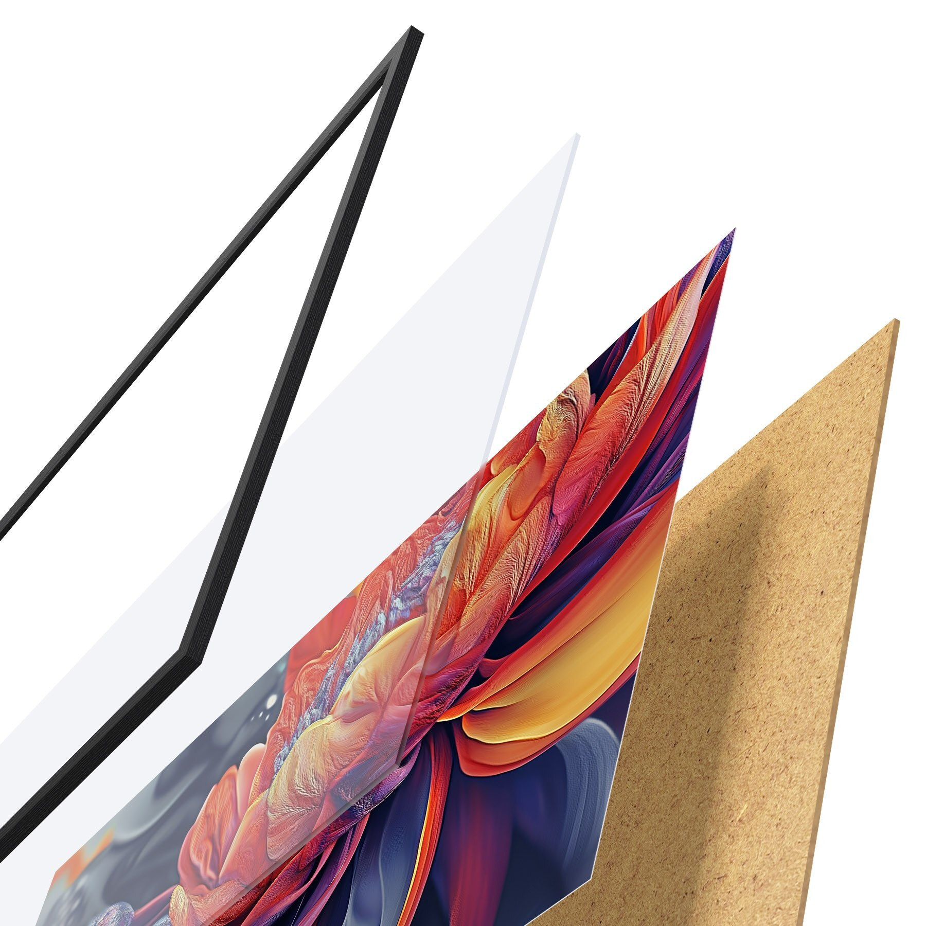 Le poster se compose d'un cadre, d'un plexiglas, d'une image imprimée et d'un support en aggloméré. Le poster peut être immédiatement accroché au mur grâce aux fixations au dos.