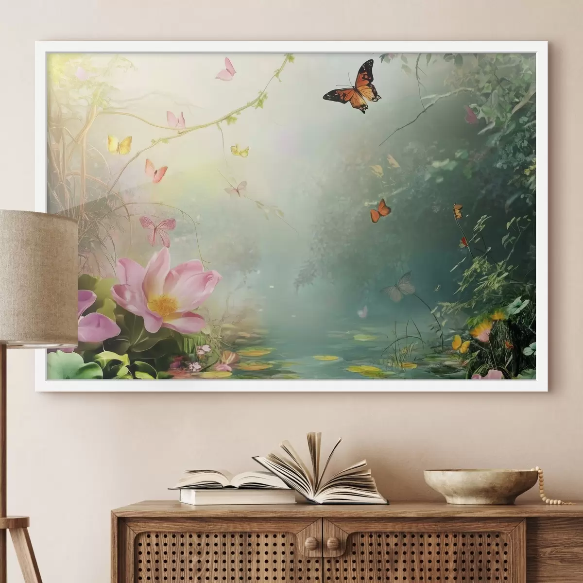 Affiche Lac dans la forêt sous les arbres Non f44216