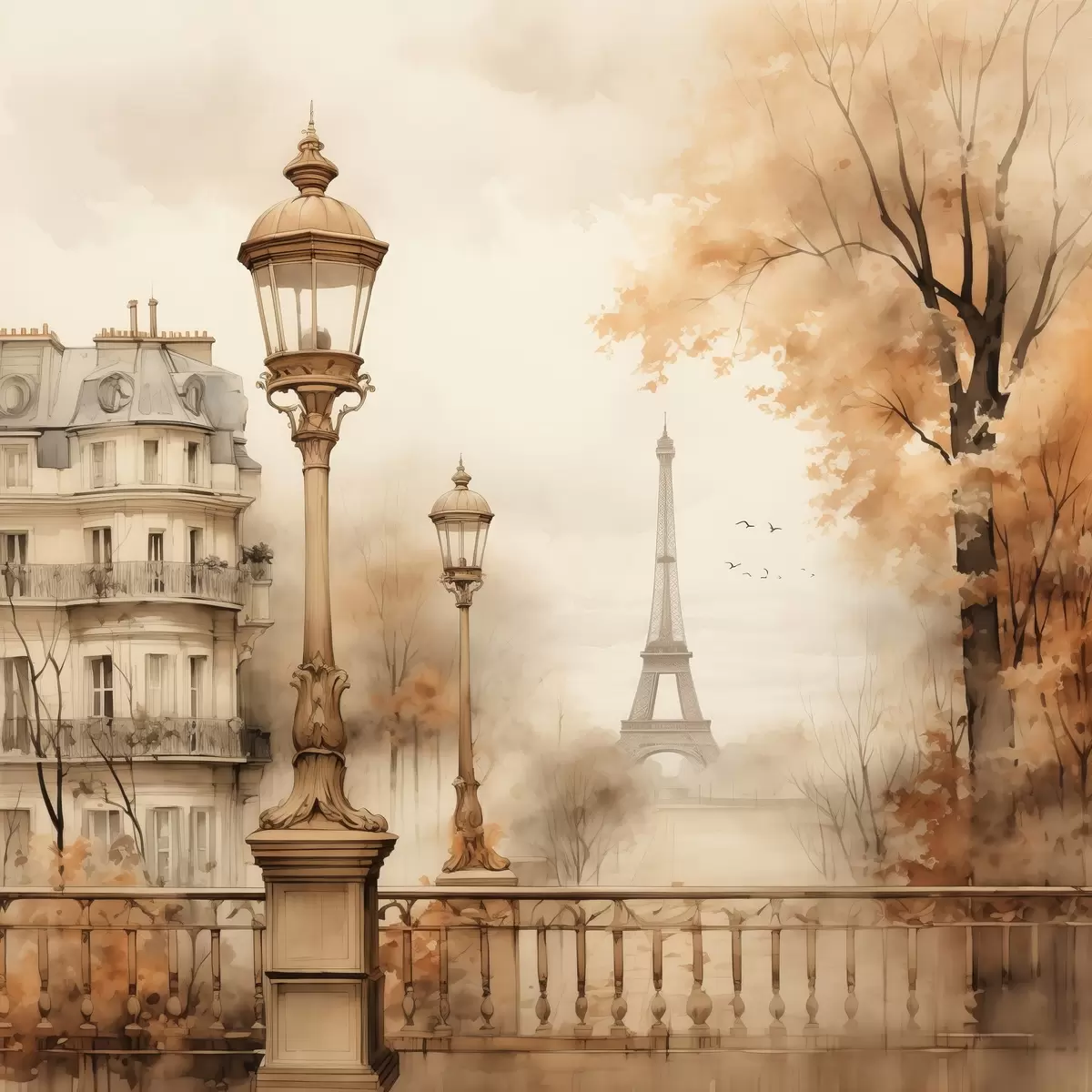 Affiche Automne à Paris dans le style de l'aquarelle atmosphérique Non f44239