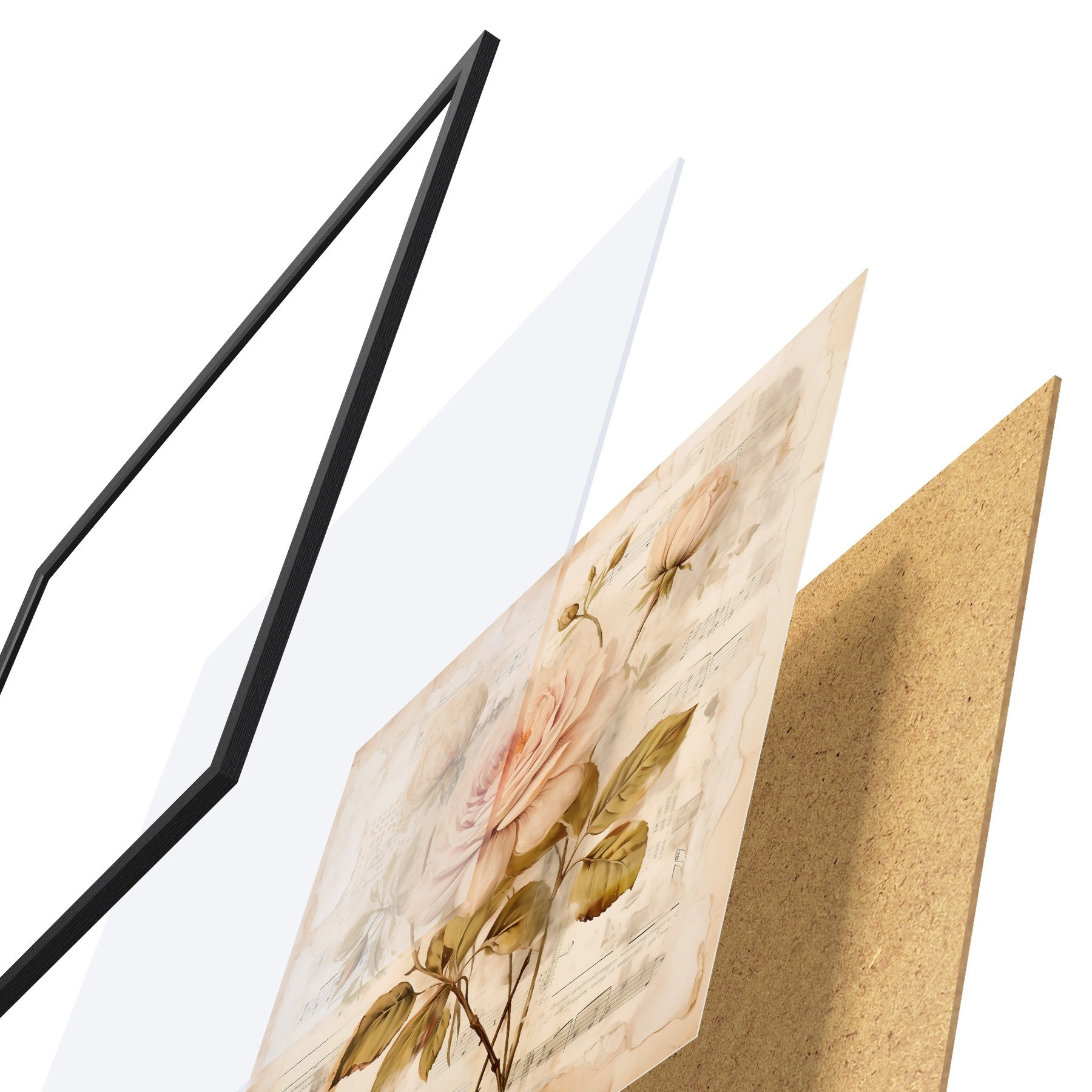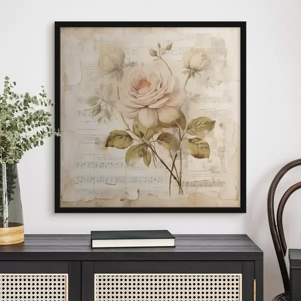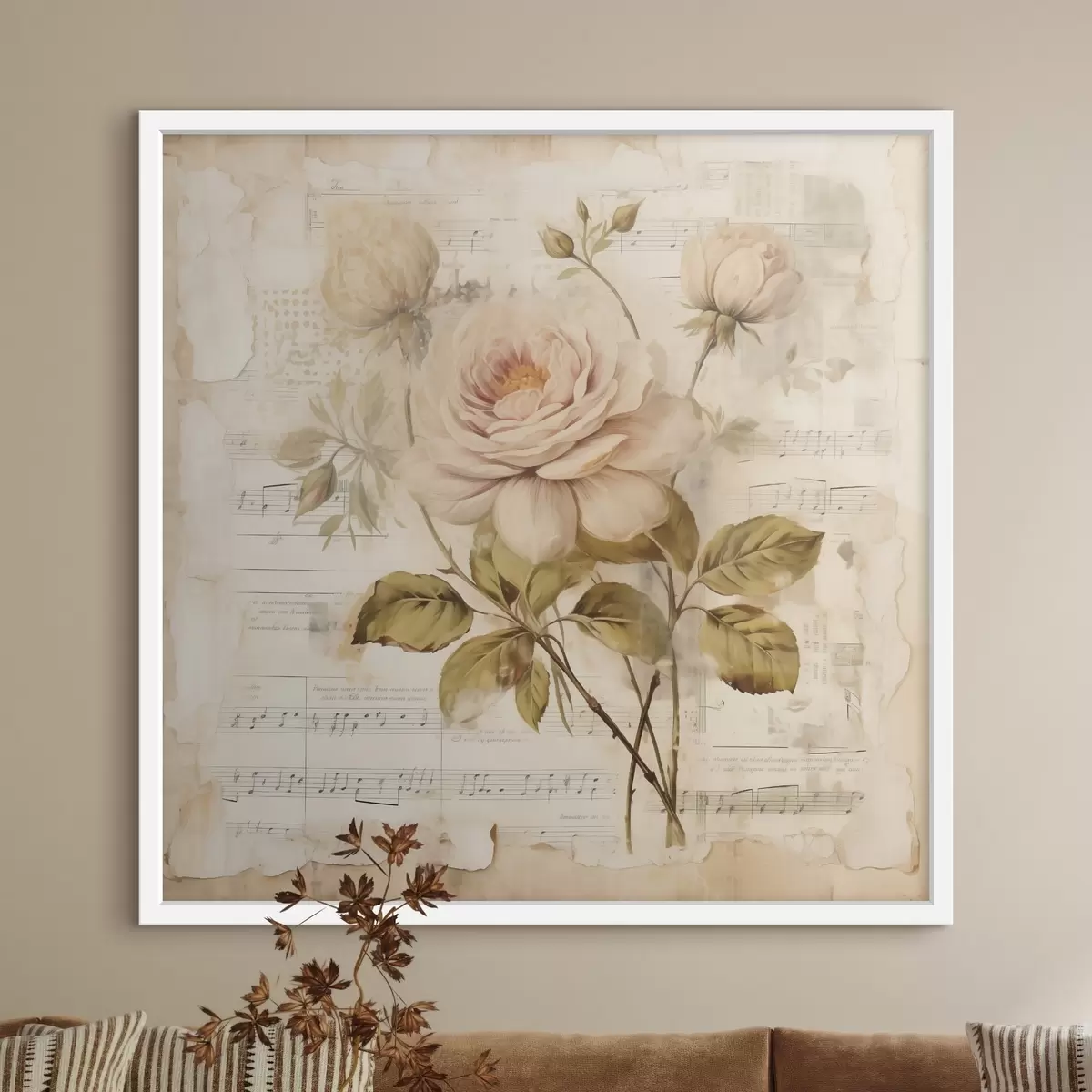 Affiche Composition vintage de roses sur fond de vieilles notes Non f44247