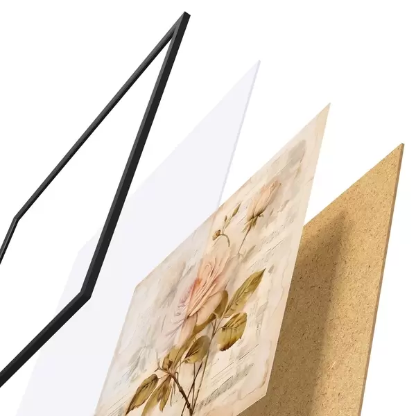 Le poster se compose d'un cadre, d'un plexiglas, d'une image imprimée et d'un support en aggloméré. Le poster peut être immédiatement accroché au mur grâce aux fixations au dos.