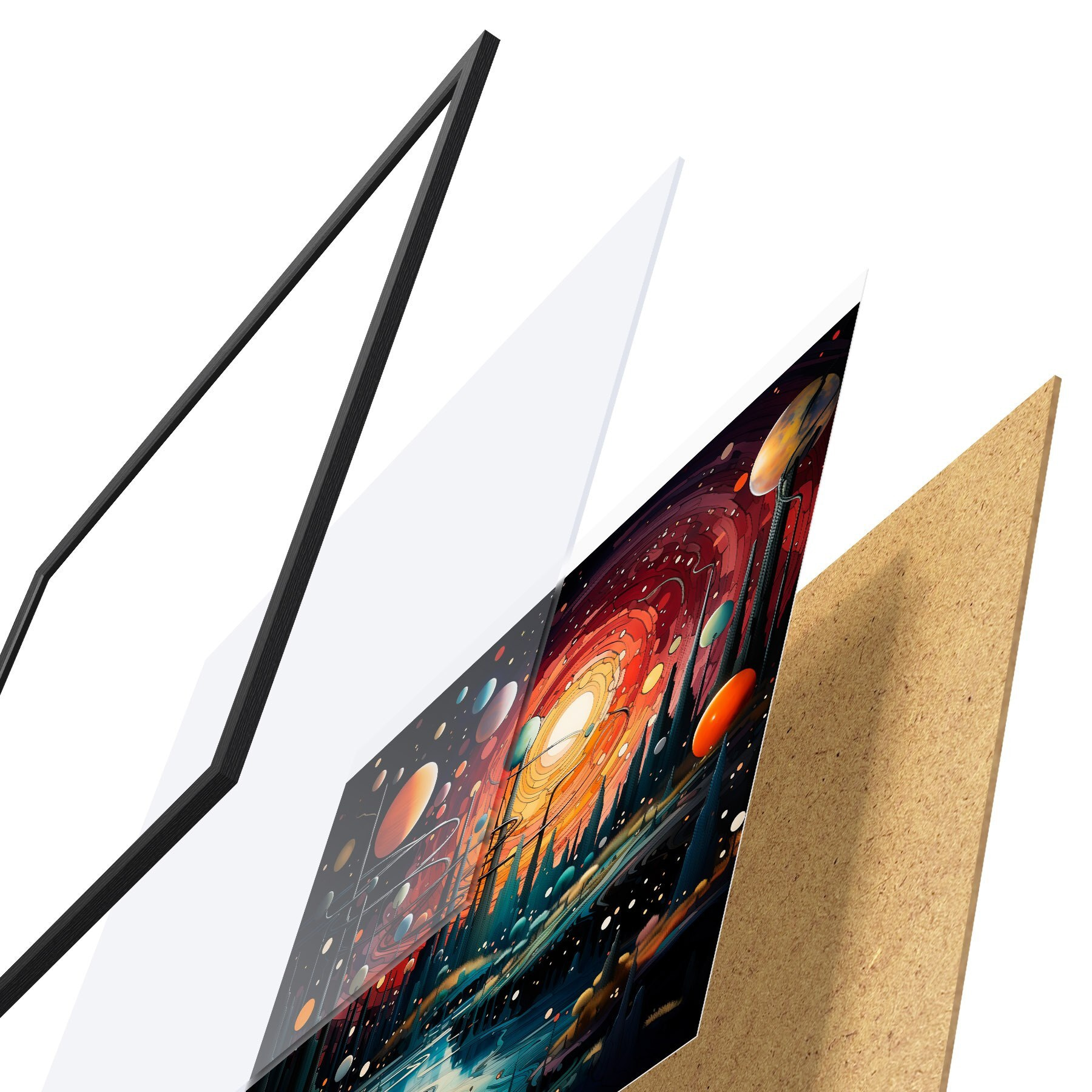 Le poster se compose d'un cadre, d'un plexiglas, d'une image imprimée et d'un support en aggloméré. Le poster peut être immédiatement accroché au mur grâce aux fixations au dos.