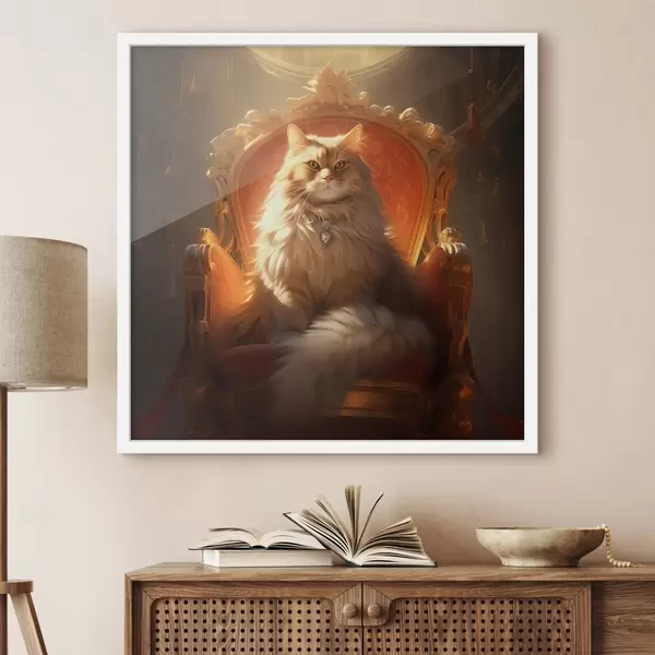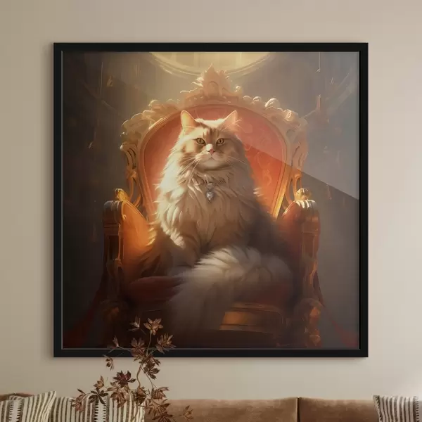 Affiche Chat royal aux yeux d'ambre sur un trône dans les rayons de la gloire dans le style baroque Non f44250