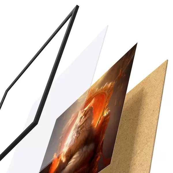Le poster se compose d'un cadre, d'un plexiglas, d'une image imprimée et d'un support en aggloméré. Le poster peut être immédiatement accroché au mur grâce aux fixations au dos.