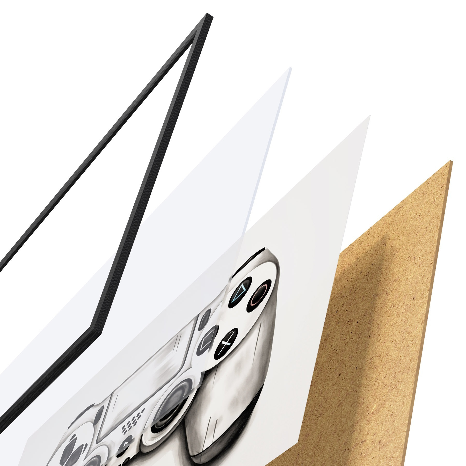 Le poster se compose d'un cadre, d'un plexiglas, d'une image imprimée et d'un support en aggloméré. Le poster peut être immédiatement accroché au mur grâce aux fixations au dos.