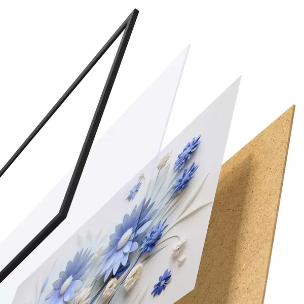 Le poster se compose d'un cadre, d'un plexiglas, d'une image imprimée et d'un support en aggloméré. Le poster peut être immédiatement accroché au mur grâce aux fixations au dos.