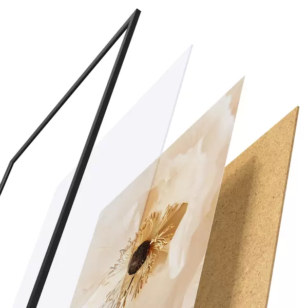 Le poster se compose d'un cadre, d'un plexiglas, d'une image imprimée et d'un support en aggloméré. Le poster peut être immédiatement accroché au mur grâce aux fixations au dos.