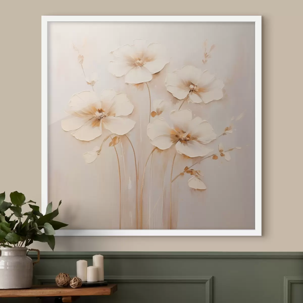 Affiche Fleurs beiges aux pétales volumineux dans les tons pastel f44337