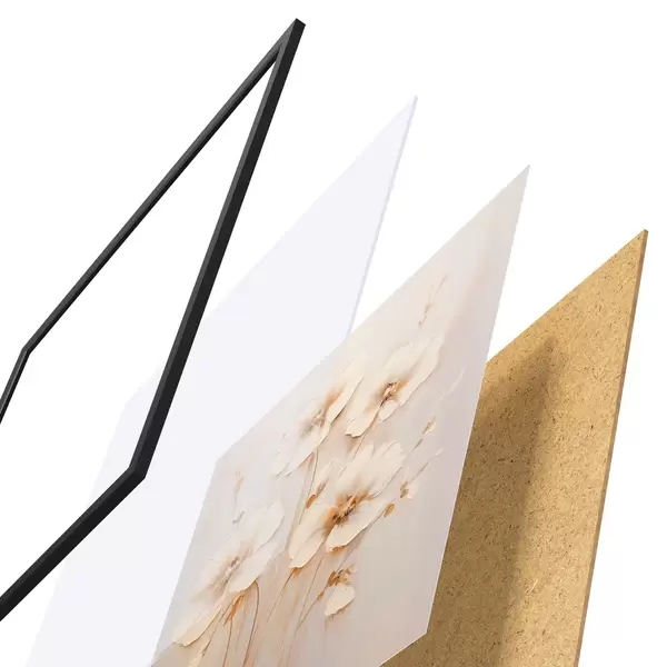Le poster se compose d'un cadre, d'un plexiglas, d'une image imprimée et d'un support en aggloméré. Le poster peut être immédiatement accroché au mur grâce aux fixations au dos.