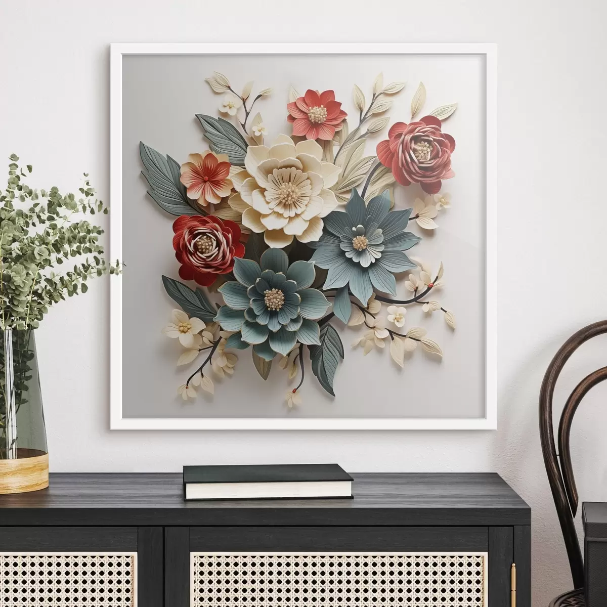 Affiche Composition de fleurs 3D lumineuses et volumineuses Non f44338