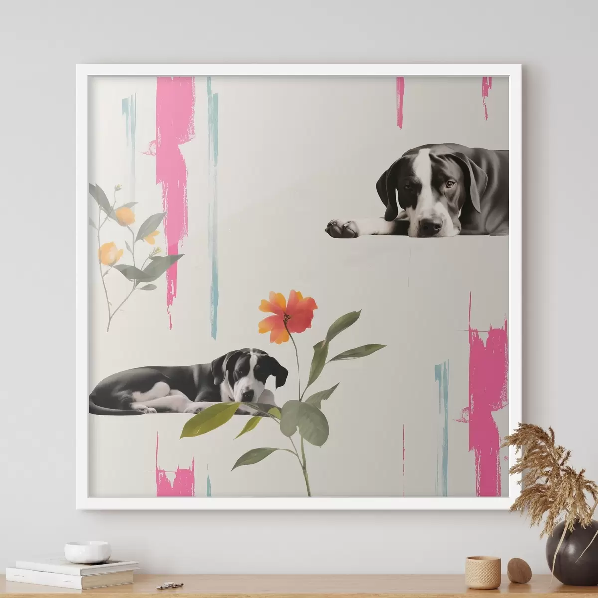 Affiche Dogue noir et blanc aux yeux tristes f44339