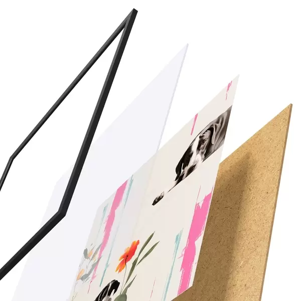 Le poster se compose d'un cadre, d'un plexiglas, d'une image imprimée et d'un support en aggloméré. Le poster peut être immédiatement accroché au mur grâce aux fixations au dos.