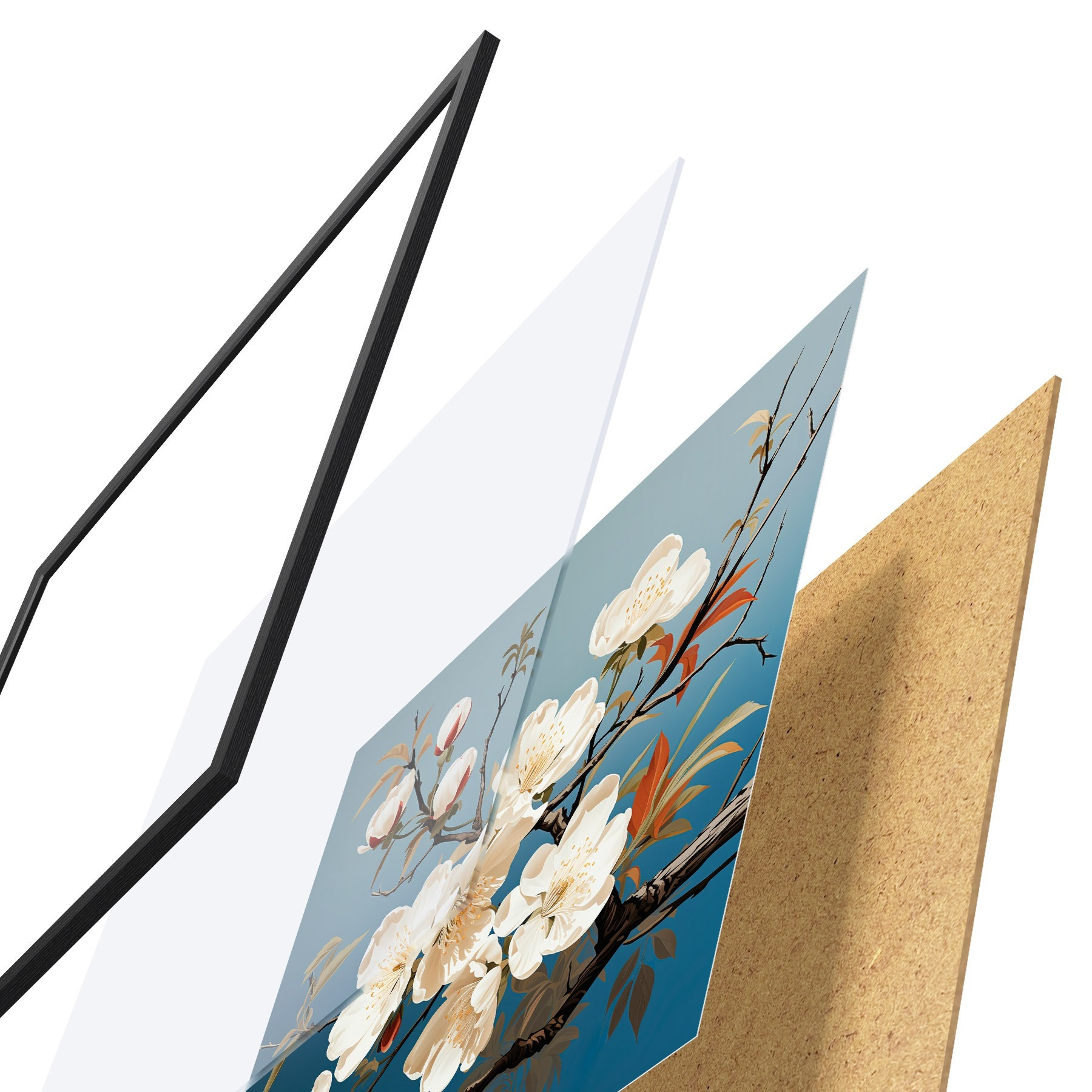 Le poster se compose d'un cadre, d'un plexiglas, d'une image imprimée et d'un support en aggloméré. Le poster peut être immédiatement accroché au mur grâce aux fixations au dos.