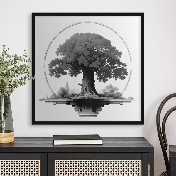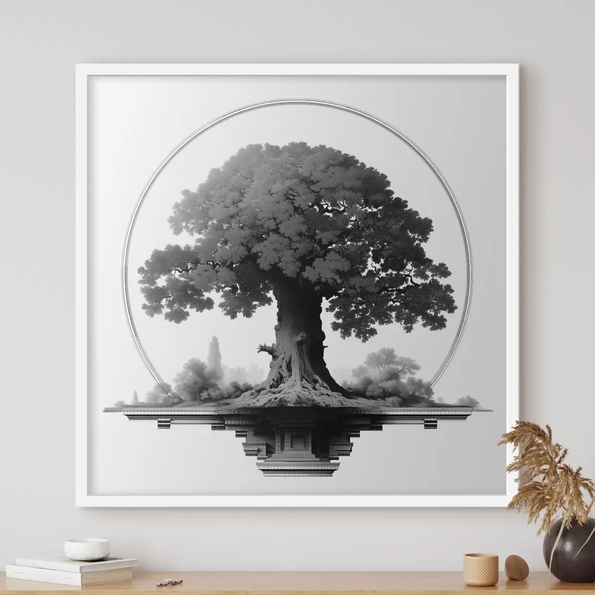 Affiche Arbre monochrome au tronc puissant et à la couronne tentaculaire f44346