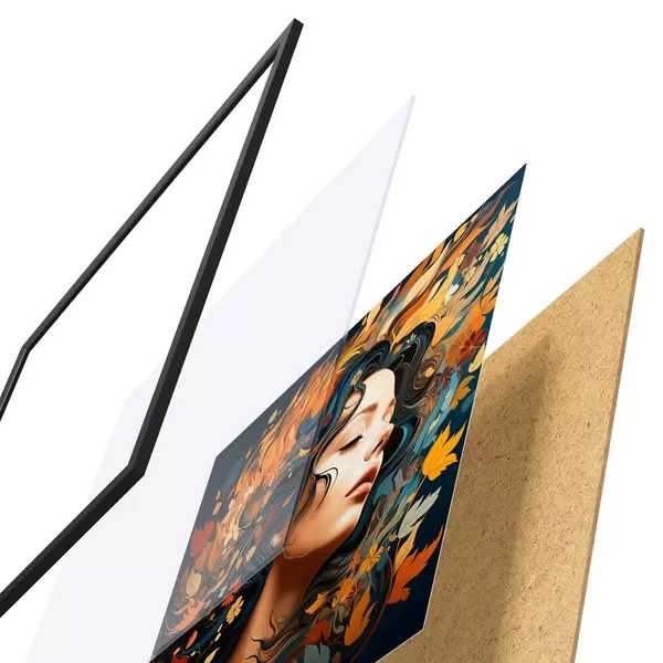 Le poster se compose d'un cadre, d'un plexiglas, d'une image imprimée et d'un support en aggloméré. Le poster peut être immédiatement accroché au mur grâce aux fixations au dos.