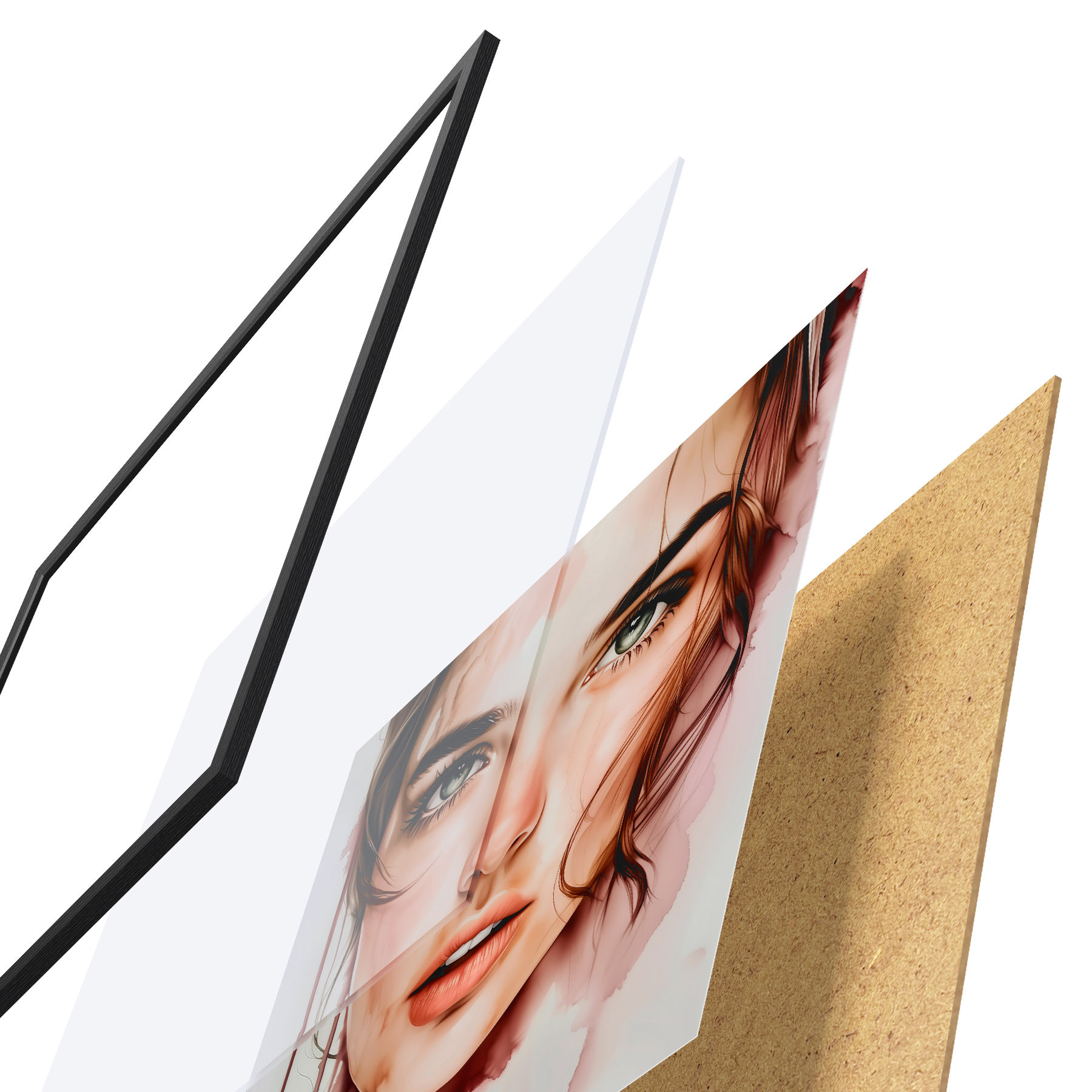 Le poster se compose d'un cadre, d'un plexiglas, d'une image imprimée et d'un support en aggloméré. Le poster peut être immédiatement accroché au mur grâce aux fixations au dos.