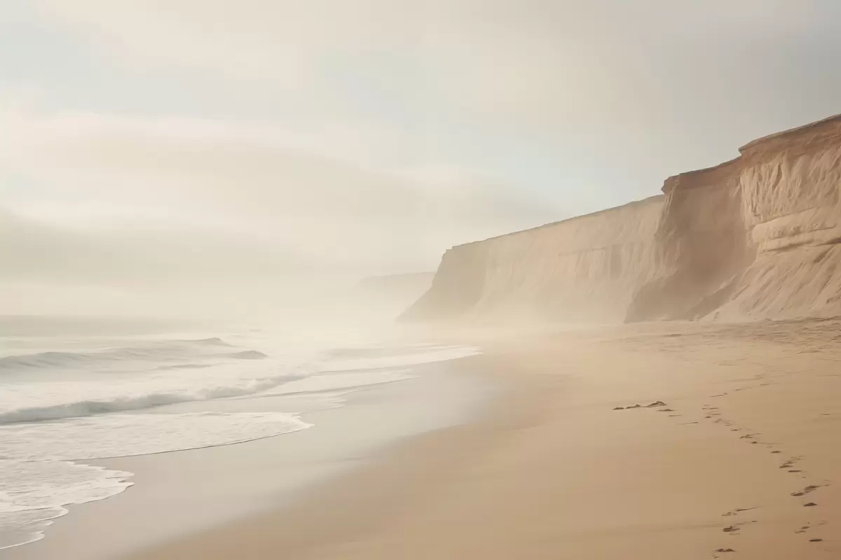 Affiche Paysage d'une plage de sable avec une falaise par une belle journée ensoleillée f44391
