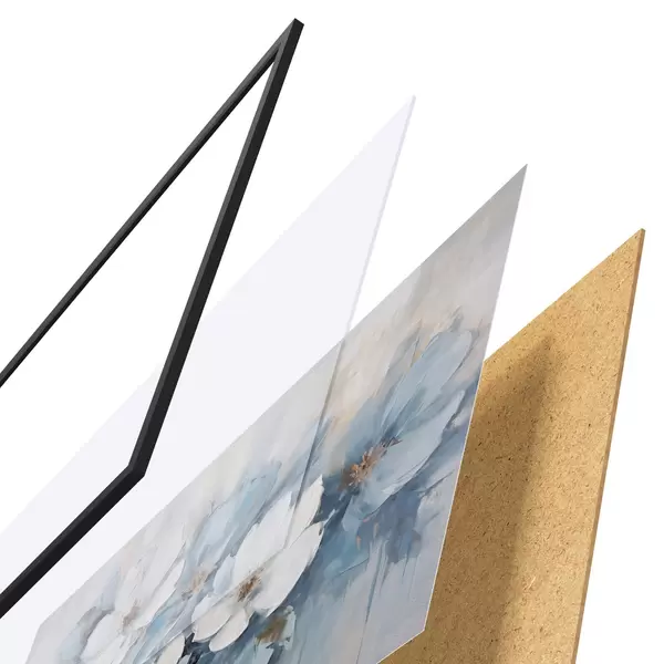 Le poster se compose d'un cadre, d'un plexiglas, d'une image imprimée et d'un support en aggloméré. Le poster peut être immédiatement accroché au mur grâce aux fixations au dos.
