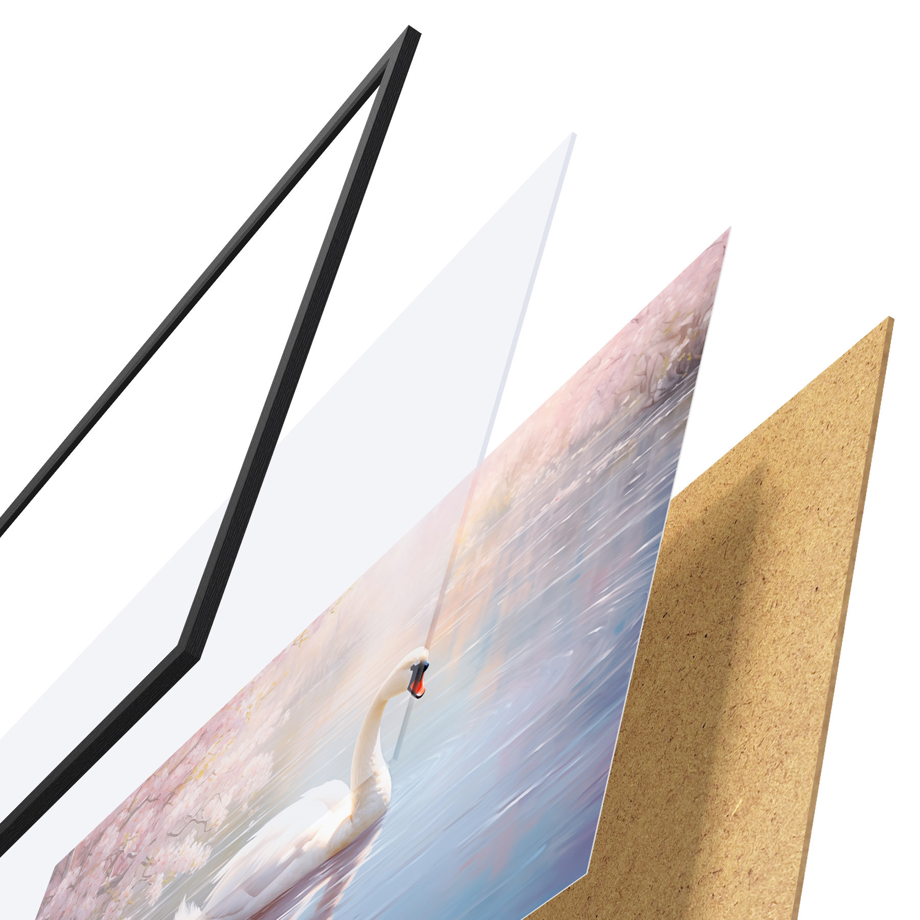 Le poster se compose d'un cadre, d'un plexiglas, d'une image imprimée et d'un support en aggloméré. Le poster peut être immédiatement accroché au mur grâce aux fixations au dos.