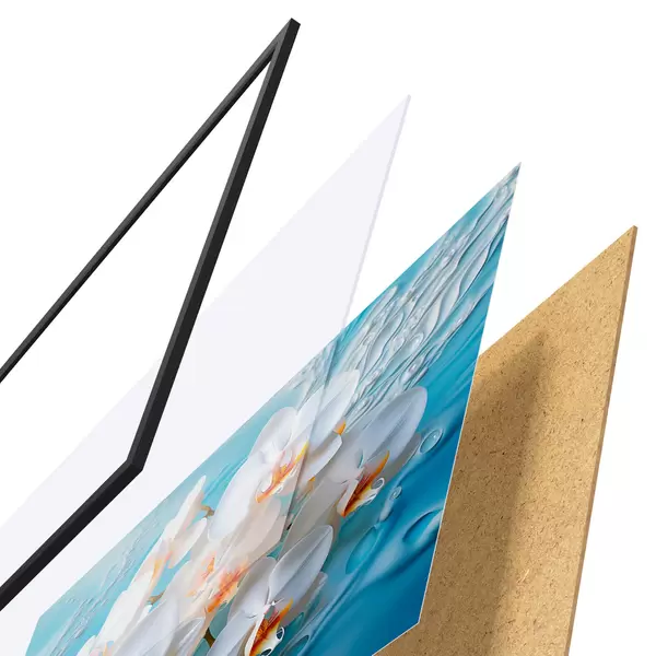 Le poster se compose d'un cadre, d'un plexiglas, d'une image imprimée et d'un support en aggloméré. Le poster peut être immédiatement accroché au mur grâce aux fixations au dos.