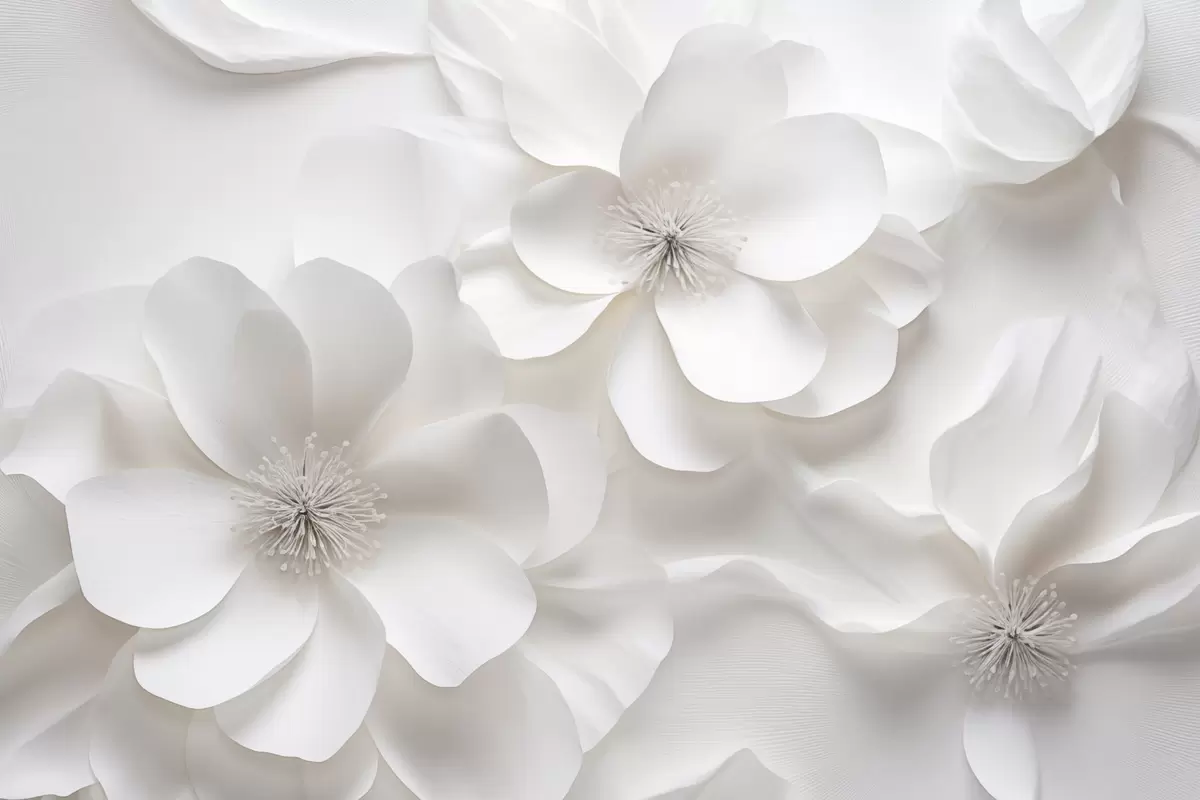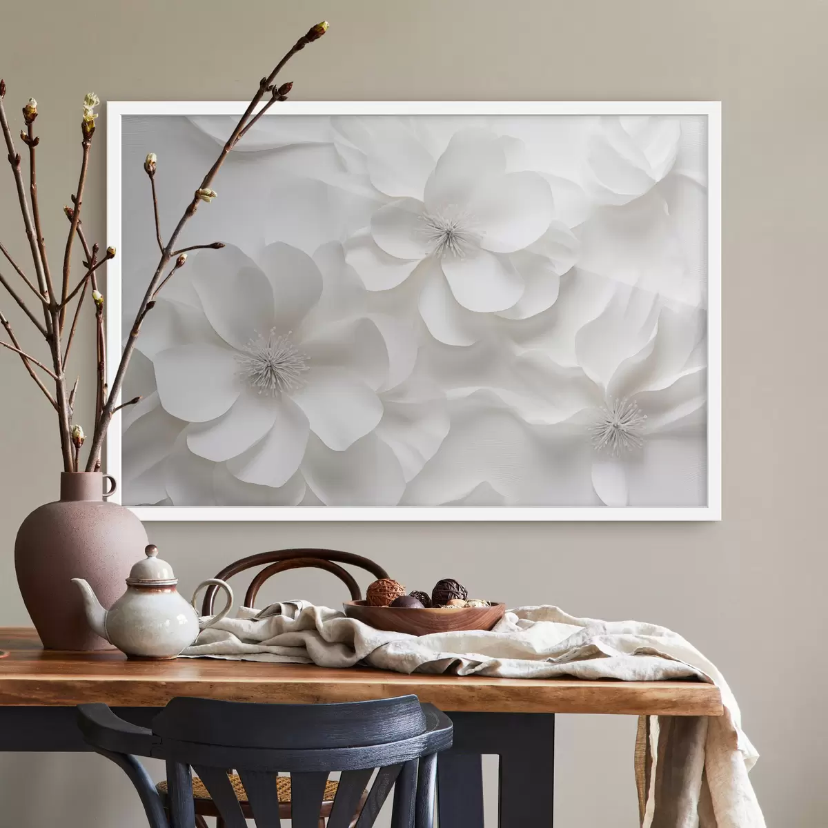 Affiche Fleurs décoratives blanches aux pétales délicats et aux étamines complexes Non f44406