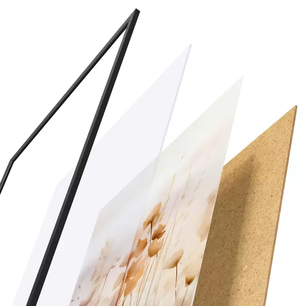 Le poster se compose d'un cadre, d'un plexiglas, d'une image imprimée et d'un support en aggloméré. Le poster peut être immédiatement accroché au mur grâce aux fixations au dos.