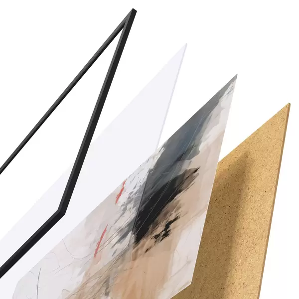 Le poster se compose d'un cadre, d'un plexiglas, d'une image imprimée et d'un support en aggloméré. Le poster peut être immédiatement accroché au mur grâce aux fixations au dos.