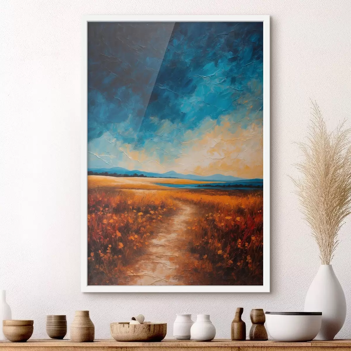 Affiche Champ de fleurs le soir en peinture acrylique f44440