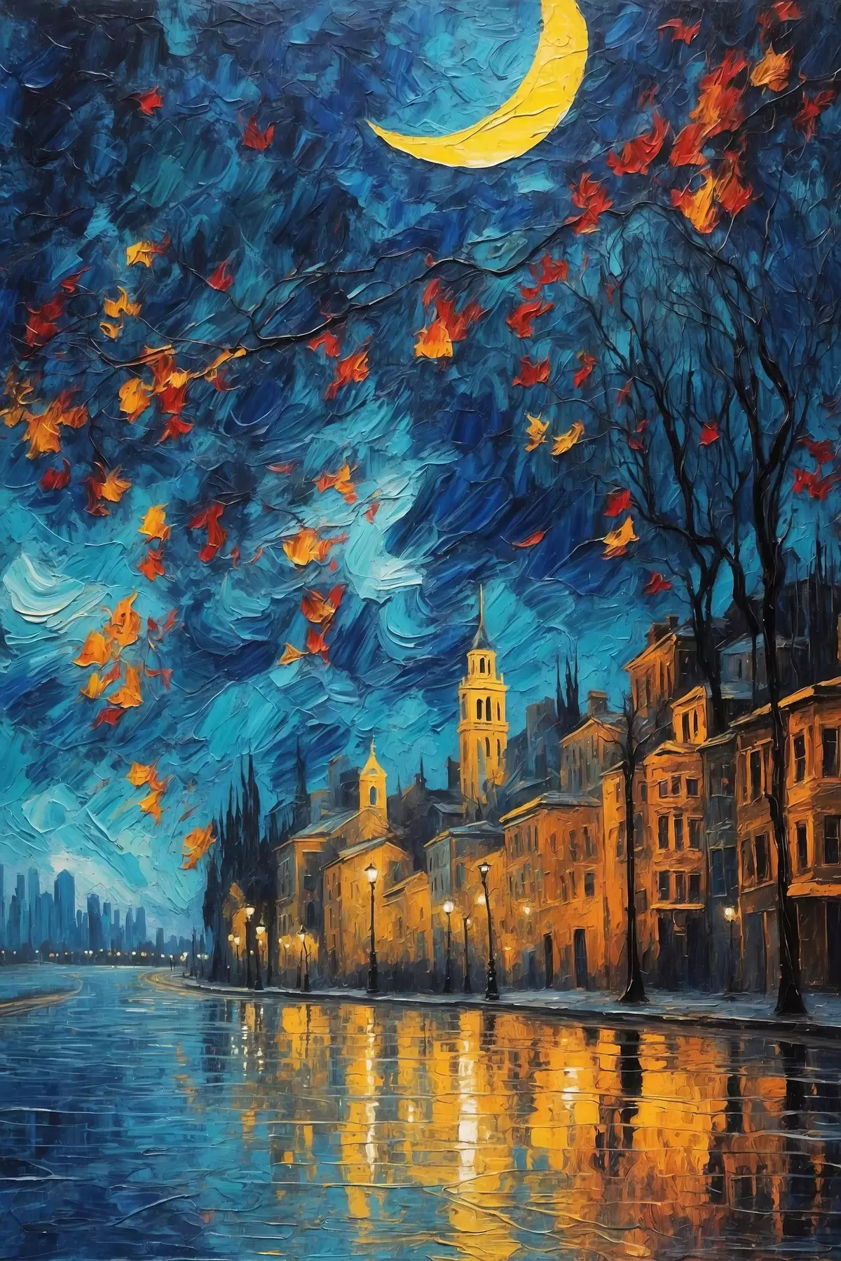 Affiche Nuit à Londres en peinture acrylique Non f44453