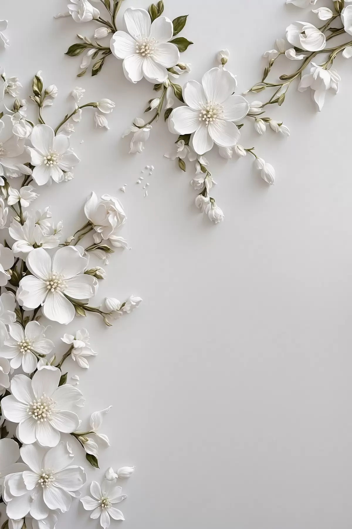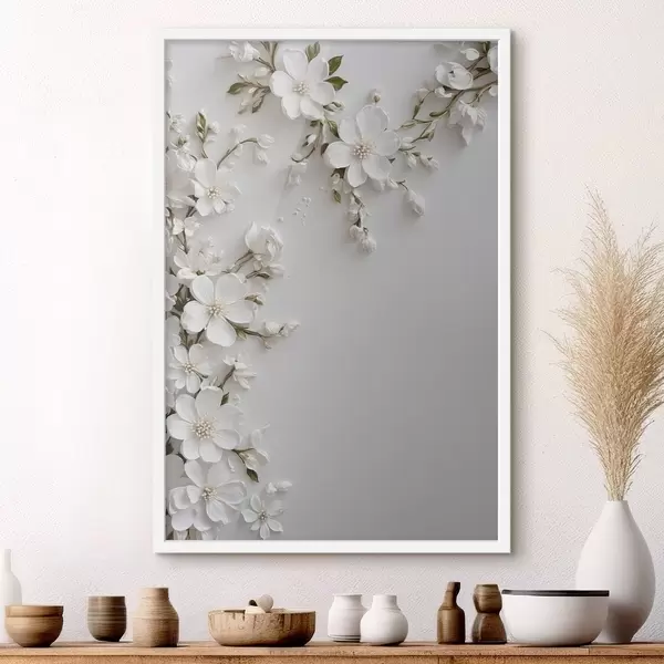 Affiche Fleurs blanches sur fond de mur blanc f44466