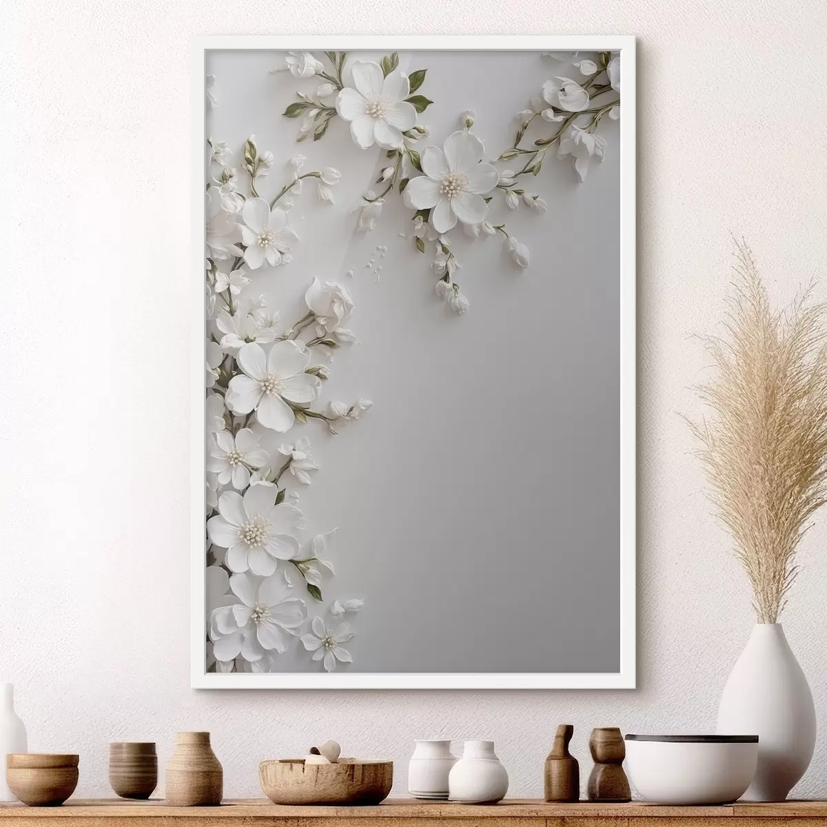 Affiche Fleurs blanches sur fond de mur blanc Non f44466