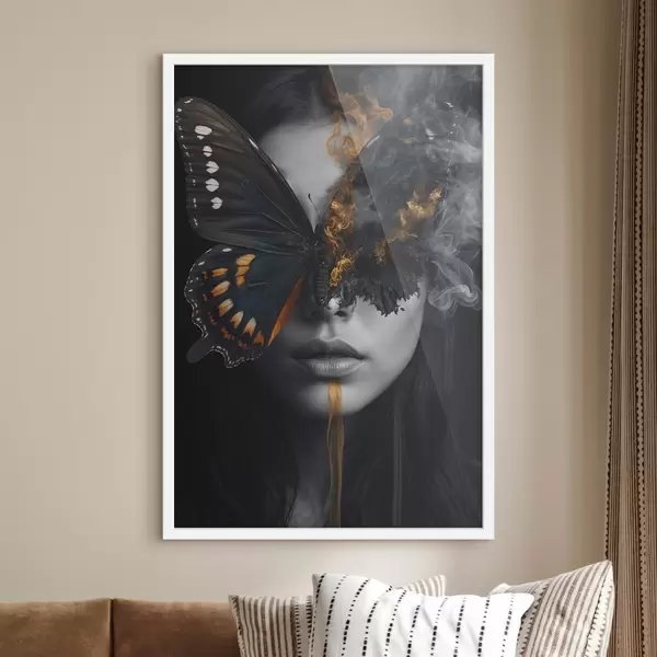 Affiche Papillon brûlant sur le visage d'une fille f44468