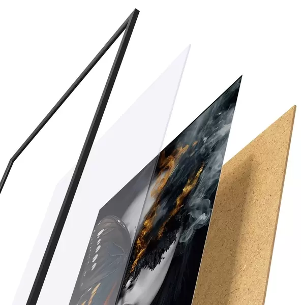 Le poster se compose d'un cadre, d'un plexiglas, d'une image imprimée et d'un support en aggloméré. Le poster peut être immédiatement accroché au mur grâce aux fixations au dos.