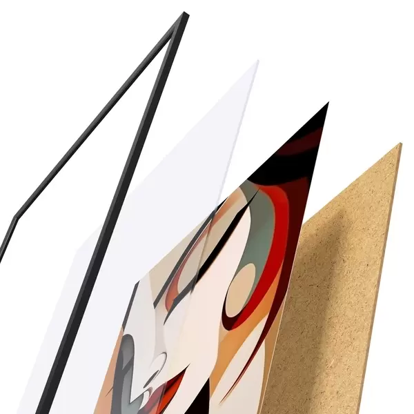 Le poster se compose d'un cadre, d'un plexiglas, d'une image imprimée et d'un support en aggloméré. Le poster peut être immédiatement accroché au mur grâce aux fixations au dos.