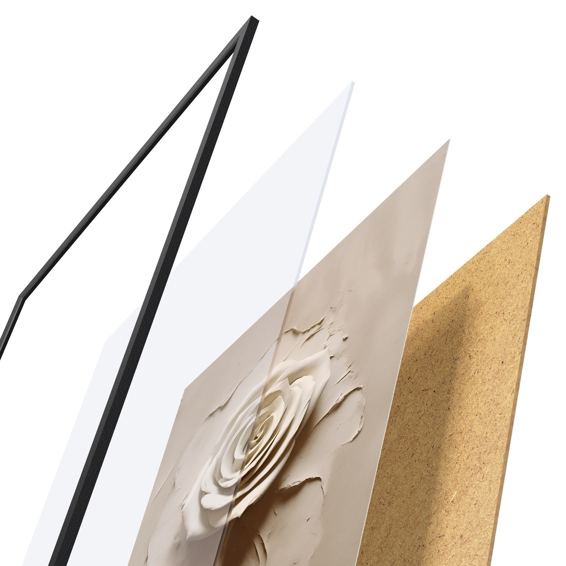 Le poster se compose d'un cadre, d'un plexiglas, d'une image imprimée et d'un support en aggloméré. Le poster peut être immédiatement accroché au mur grâce aux fixations au dos.