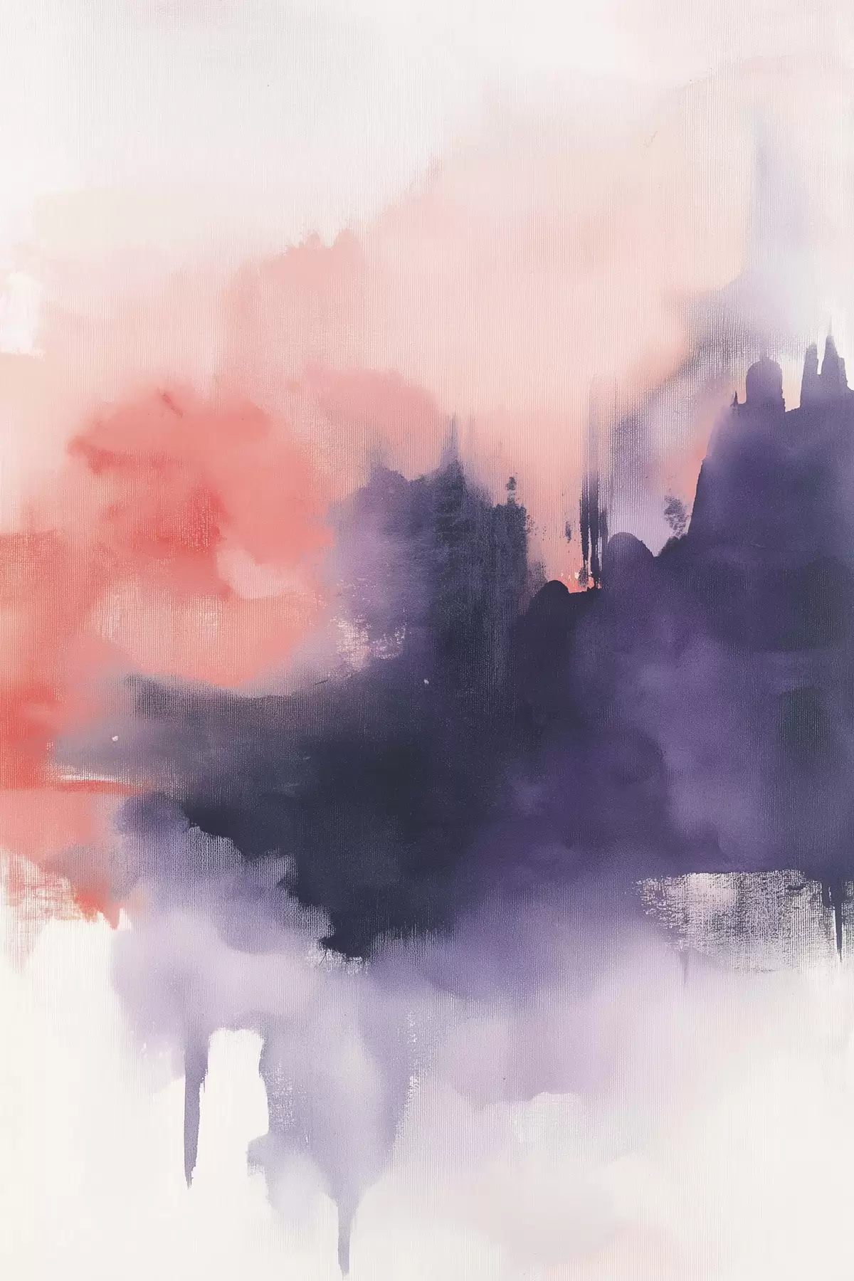 Affiche Abstraction à l'acrylique, coups de pinceau, violet et rose Non f44507