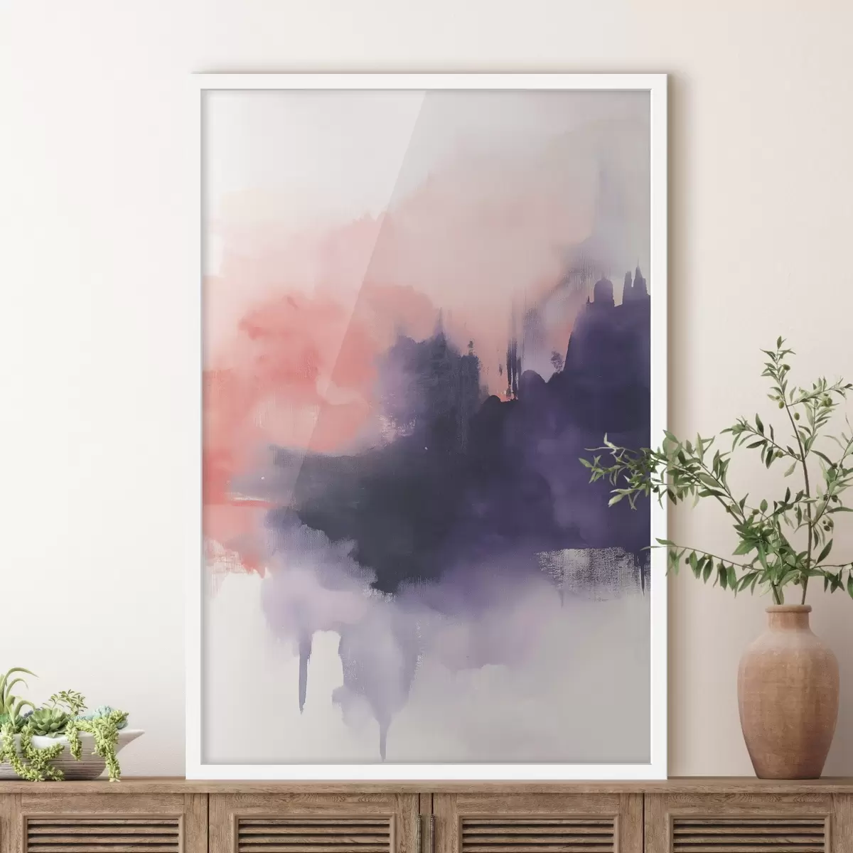 Affiche Abstraction à l'acrylique, coups de pinceau, violet et rose f44507