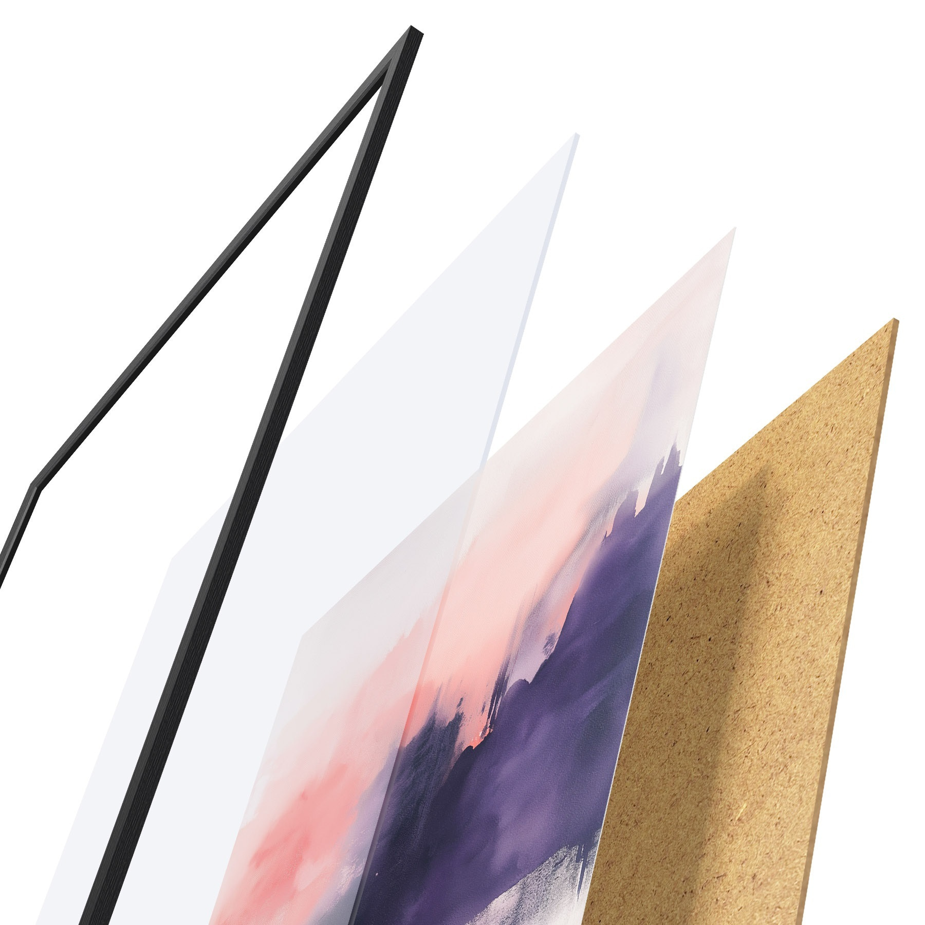 Le poster se compose d'un cadre, d'un plexiglas, d'une image imprimée et d'un support en aggloméré. Le poster peut être immédiatement accroché au mur grâce aux fixations au dos.