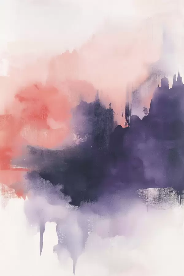 Affiche Abstraction à l'acrylique, coups de pinceau, violet et rose Non f44507