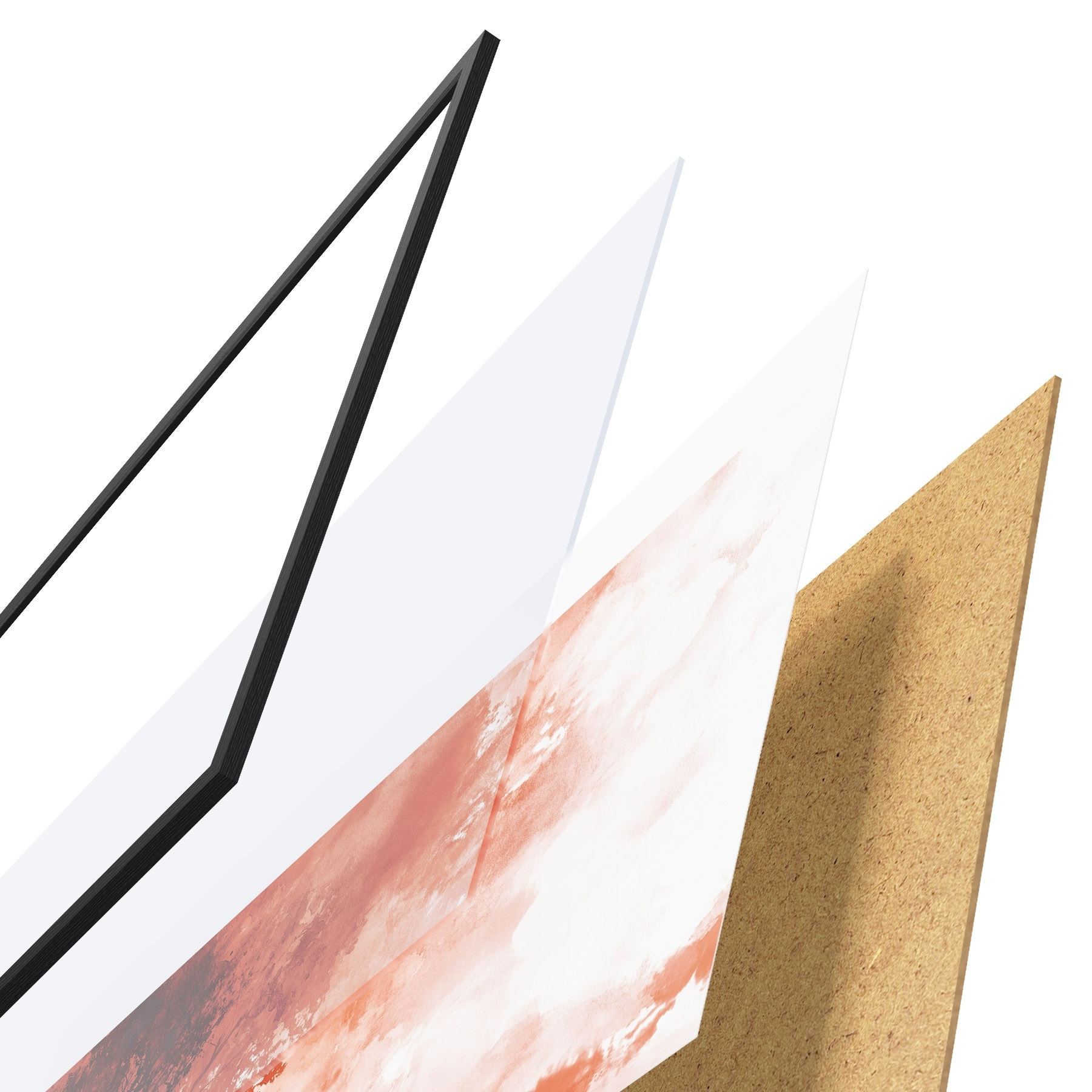 Le poster se compose d'un cadre, d'un plexiglas, d'une image imprimée et d'un support en aggloméré. Le poster peut être immédiatement accroché au mur grâce aux fixations au dos.