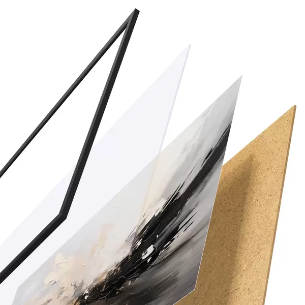 Le poster se compose d'un cadre, d'un plexiglas, d'une image imprimée et d'un support en aggloméré. Le poster peut être immédiatement accroché au mur grâce aux fixations au dos.