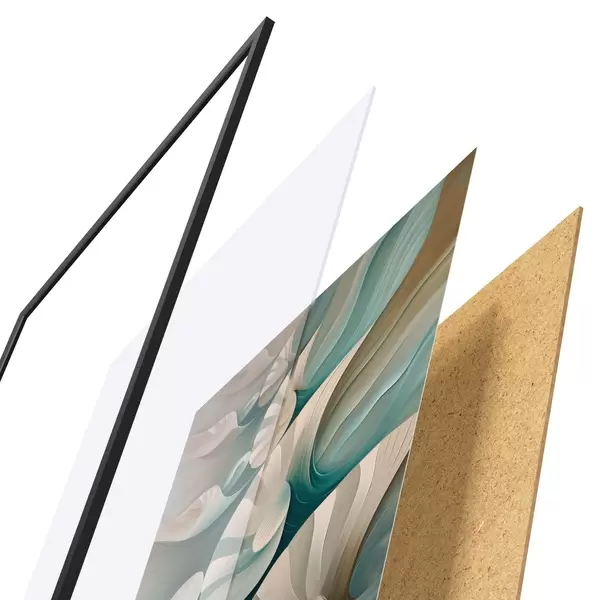 Le poster se compose d'un cadre, d'un plexiglas, d'une image imprimée et d'un support en aggloméré. Le poster peut être immédiatement accroché au mur grâce aux fixations au dos.