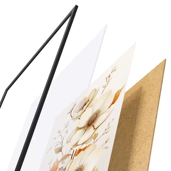 Le poster se compose d'un cadre, d'un plexiglas, d'une image imprimée et d'un support en aggloméré. Le poster peut être immédiatement accroché au mur grâce aux fixations au dos.
