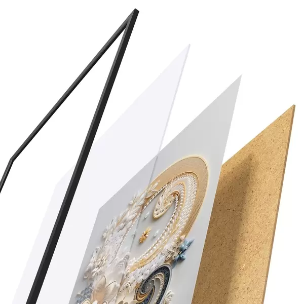 Le poster se compose d'un cadre, d'un plexiglas, d'une image imprimée et d'un support en aggloméré. Le poster peut être immédiatement accroché au mur grâce aux fixations au dos.
