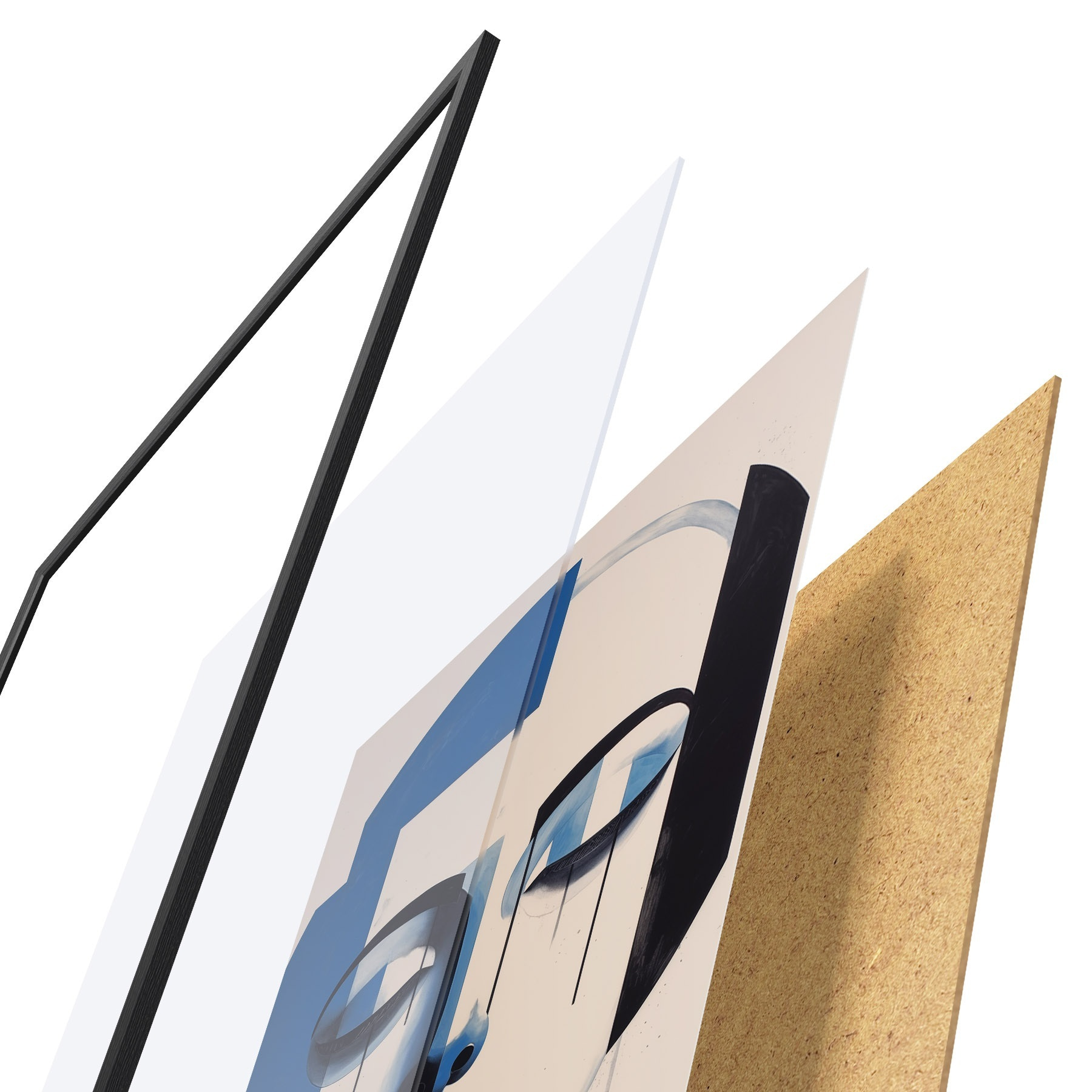 Le poster se compose d'un cadre, d'un plexiglas, d'une image imprimée et d'un support en aggloméré. Le poster peut être immédiatement accroché au mur grâce aux fixations au dos.