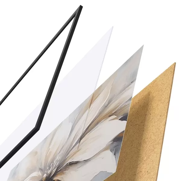Le poster se compose d'un cadre, d'un plexiglas, d'une image imprimée et d'un support en aggloméré. Le poster peut être immédiatement accroché au mur grâce aux fixations au dos.