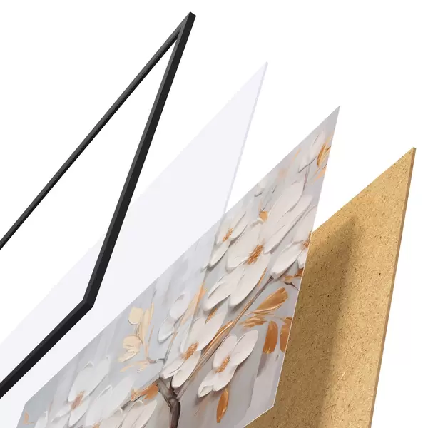 Le poster se compose d'un cadre, d'un plexiglas, d'une image imprimée et d'un support en aggloméré. Le poster peut être immédiatement accroché au mur grâce aux fixations au dos.